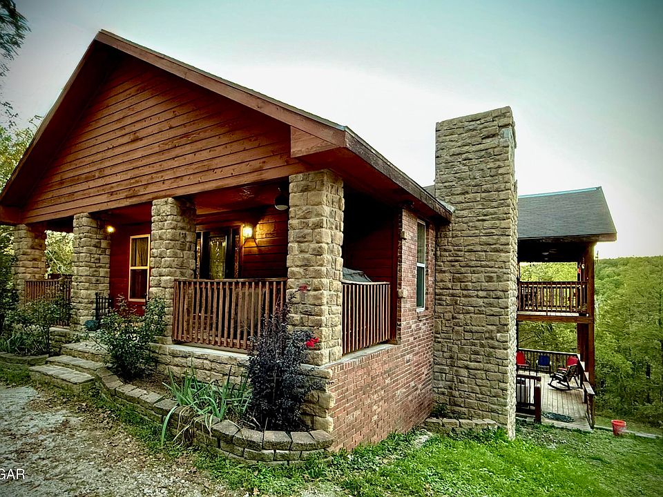 Escape to your ultimate retreat—a breathtaking lodge-style home crafted for adventure seekers and nature lovers! Nestled just 25 minutes east of vibrant Branson, this extraordinary property borders 12,000 acres of pristine Mark Twain National Forest, a deer hunter's paradise where the thrill of the hunt awaits right at your doorstep. For anglers, the sparkling waters of Bull Shoals Lake are a mere 10-minute drive, promising endless days of fishing bliss.