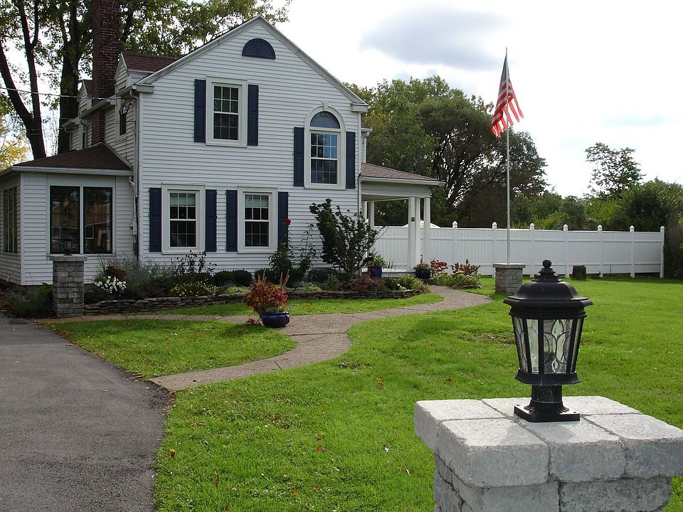 ONE OF A KIND! 2,350 sq ft farmhouse on 1.2 acres in the Town of Tonawanda. Property includes large patio, 2 car garage w/wrap around driveway & 2,400 sq ft shop. Patio includes granite island, stainless grill, fire pit & hot tub. House has many recent updates including: gourmet kitchen w/30' corian countertops, 36" stainless cook top, top of the line stainless appliances, radiant heated ceramic tile floor. Beautiful natural light in dining/living/sunroom through French doors. Huge master bdrm. Bath w/corian tub surround. Beautiful arc window in stairway. Cedar linen closet.