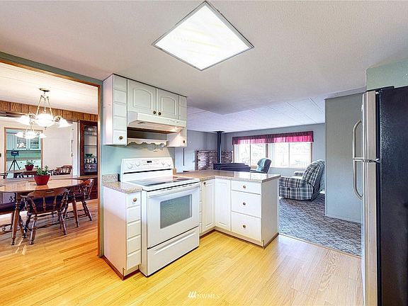Great opportunity to own this 2,630 sq ft. one-level home. Perfect North end location! This 1975 manufactured home was remodeled in 1984 adding a large bedroom and rec room. Great for entertaining! Original owners. Beautifully maintained 3-bedroom 2 bath home features a tastefully updated kitchen, dining area, and great room including a cozy propane fireplace. Separate living room and office/den. Large primary bedroom includes a walk-in closet and private bath. French doors open to a well-appointed covered deck. Mostly fenced 16,988 sq ft lot boast of mature landscaping, fruit trees, and a 21x30 detached garage/shop with a wood-burning fireplace. Plenty of parking for a boat, RV, and all of your cars. RV hook up on the property.