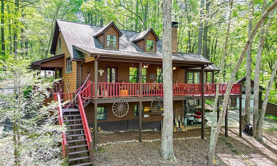 This remarkable property spans across 69+/- acres and is nestled in a secluded location in Cherokee County. It boasts a stunning scenery, complete with a 4.5 acre lake that is fed by four natural springs, offering crystal clear water and abundant fishing opportunities for brim, crappie, and largemouth bass. The estate includes a charming custom-built home, featuring heart pine wood floors, a wrap-around deck, and a cozy masonry fireplace perfect for wood burning. The home has 2 bedrooms, a sleeping loft, an office, and 3 full baths. Additionally, it has a full basement, which houses a private guest suite, and a detached garage that currently functions as a woodworking shop with an extra finished storage room above it. The owner's suite is conveniently located on the main level and provides access to a four seasons room, which overlooks the lake and provides the perfect spot to savor your morning coffee. The tranquil atmosphere of this property, with the pleasant sounds of birds chirping, will take your breath away. The property also boasts established walking and hiking trails, a kayak launch, a platform dock with additional seating overlooking the lake, and a floating swim dock for endless fun. This truly is a unique and unparalleled estate.