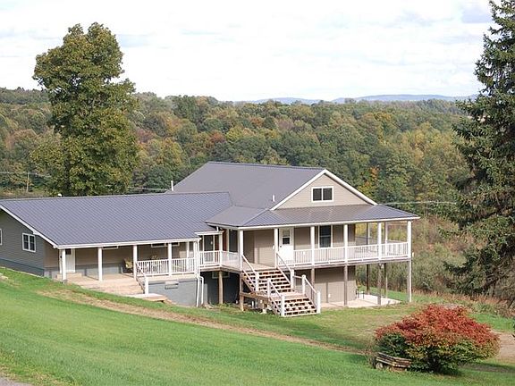 Sitting on 32 acres, this 4-bedroom, 3-bath home offers generous space inside and out. Relax on the expansive wraparound porch while you enjoy gentle breezes and breathtaking views. The beauty extends inside, where the main floor includes light-filled living spaces and a first-floor laundry room with easy access to the bedrooms. The upstairs den provides a quiet work retreat, and the upstairs bonus room and large basement have almost endless possibilities. Even your vehicles will have plenty of room in the detached 4-stall garage (including a 12-foot stall).
