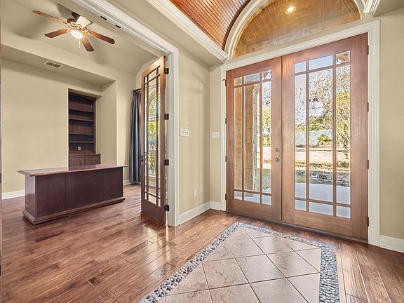 Luxury Hill Country Retreat with Panoramic Ranch Views, a Pool & River Access! Welcome to your private Hill Country escape-an exquisite 1.5-story custom estate set on 5 peaceful acres with access to the Guadalupe River. From the moment you step inside, you're greeted by breathtaking ranch views framed by expansive picture windows that fill the home with natural light and showcase the beauty of the surrounding landscape. This thoughtfully designed residence features five bedrooms, four full and two half baths, and over 4,000 sq. ft. of refined living space. The open-concept layout flows effortlessly from the grand living room-anchored by a striking stone fireplace AND beamed ceiling-to the chef's kitchen equipped with a large island, double ovens, propane cooktop, custom cabinetry, a breakfast bar, and a walk-in pantry. The primary suite captures peaceful Hill Country scenery through large windows and includes a spa-inspired bath and an oversized walk-in closet. Tucked discreetly within the closet is a hidden safe room, ideal for secure gun and valuable storage. High ceilings, wood and tile flooring, and warm finishes throughout add timeless charm and sophistication. Upstairs, a spacious bonus room with balcony overlooks the property, while a private study and formal dining area provide both function and elegance. Step outside to your Hill Country paradise-complete with an in-ground pool, covered patio with a fireplace and an outdoor kitchen featuring a built-in grill, and plenty of shaded seating beneath