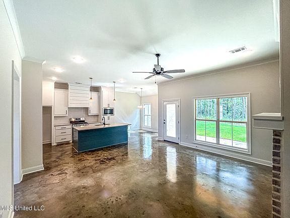 Welcome to this beautiful 3 bed, 2 bath home located in a covenant-protected neighborhood just minutes from shopping, entertainment, and interstate access. This open-concept layout features stained concrete floors throughout, a large kitchen island, granite countertops, and a spacious pantry. Crown molding adds a refined touch, while pine ceilings on the front and back porches enhance the home's Southern charm. The master suite offers a generous walk-in closet with built-ins and a luxurious bath with separate his-and-her vanities. A perfect blend of style, comfort, and convenience!