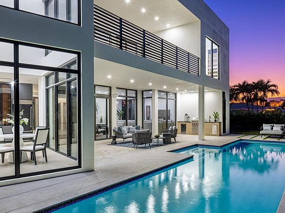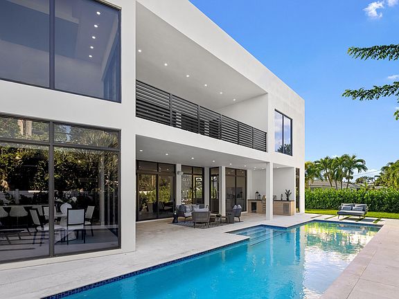 This new construction estate in prime East Boca Raton offers more than 5,000 sq. ft. of refined living space with modern architecture and resort-style amenities--an exceptional value for a move-in-ready residence in one of the area's fastest-appreciating communities. Designed for both everyday living and entertaining, the open-concept main level features double-height ceilings, custom cabinetry, and sophisticated finishes throughout. The home includes five bedrooms, six full bathrooms, one powder room, a private office, fully built-out closets, and a complete smart-home system with Sonos speakers, full camera coverage, and Wi-Fi access points. The backyard serves as a private retreat with a large pool and spa, full summer kitchen, covered cabana bath, and a spacious terrace ideal for outdoor living. An oversized two-car garage adds convenience and storage.