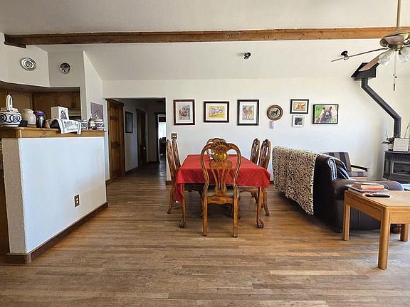 Nestled on over 6.5 acres of rolling terrain dotted with pion and juniper trees, this inviting 2-bedroom, 2-bath home offers stunning, unobstructed views of the Spanish Peaks. Enjoy quiet Colorado living with the perfect blend of comfort and nature. Step inside to a warm and welcoming living area featuring one of two wood-burning stoves—perfect for cozy mountain evenings. The inviting living space flows seamlessly to a walk-out deck that wraps around the home, offering panoramic views and the ideal spot for sunrise coffee or sunset relaxation. The open kitchen and dining area offers a friendly space for entertaining guests and loved ones. In addition, there is a large sunroom perfect for creative projects, a home office space, an additional bedroom or storage. Outside, a detached two-car garage with work area offers plenty of room for vehicles, tools, and toys. The property is partially fenced and served by a community water system and a private septic system. Located just west of Walsenburg, this property combines privacy, convenience, and breathtaking scenery, everything you want in a Southern Colorado retreat.