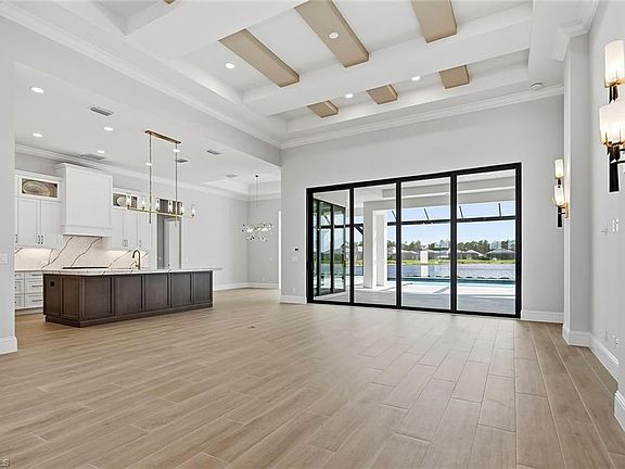 Spectacular lakefront lotOutdoor fireplaceElegant quartz countertopsGourmet kitchenOversized pool areaBreathtaking wide water viewsPremium jennair appliance package