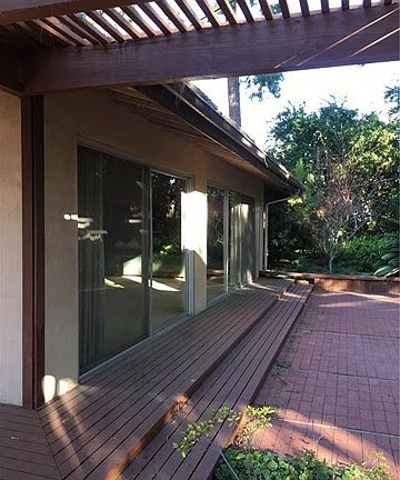 Northridge Devonshire Highlands custom estate. Wonderful 2700+ sf single level mid century contemporary home. Double door formal entry leads to very spacious living room with floor to ceiling brick fireplace. Volume beamed ceilings accent the living room, family room and dining room with wall to wall glass sliders that bring the beautiful landscaped outdoors in for that feeling of zen. Three bedrooms plus an office. Lovely music room with walnut built-ins overlooks the very cool interior atrium garden room. Large family room and breakfast room. The generous kitchen has great design potential including a huge walk-in pantry. This home is just amazing with so much potential to re-imagine to your own taste and style. 16K sf lot with tons of parking for cars, boats, RV??? Plus 2 car attached garage. Don't miss this opportunity.