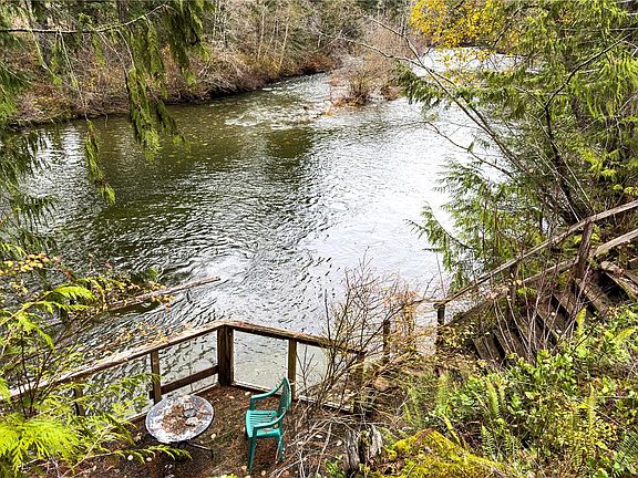 High-bank riverfront propertyDurable metal roofPractical main-level layoutWalk-out basementPartially enclosed porchPeaceful forest surroundings
