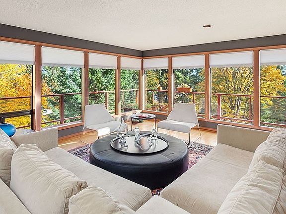 Peace, privacy and a great location. A treehouse setting with easterly views in Mercer Island, this home features a naturally lit living room, formal dining room and a wrap around deck. With a chefs kitchen and generous outdoor space, plenty of room to entertain. On the first level, an additional living area with fireplace and media center along with 2 additional bedrooms, each with their own bath. Above the 2 car garage, a detached bonus room great for guests.