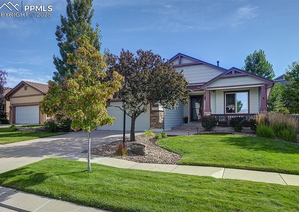 Beautifully Maintained Rancher in Pine Creek – One Owner! Welcome to this impeccably maintained home, featuring the sought after Providence floor plan by Classic Homes. Located in the prestigious Pine Creek community, this ranch-style property offers highly desirable main-level living with stunning Pikes Peak mountain views, directly across from the private Pine Creek HOA park. This spacious home offers 4 bedrooms, 3 full baths, a 2 car garage, and a finished basement. Highlights include; vaulted ceilings, an open-concept layout, abundant natural light, and neutral finishes throughout. The well appointed kitchen features custom concrete countertops, tile backsplash, pantry, built in desk, and a cozy dining area with views of Pikes Peak. The inviting great room includes a gas fireplace, perfect for Colorado evenings. The main-level Owner’s Suite boasts a walk-in closet, dual vanities, heated tile floor, soaking tub, and a separate shower. A second main-level bedroom with French doors is ideal for a home office, with a full hall bath nearby. The finished basement expands your living space with a large rec room, two additional bedrooms, full bath, and laundry area ideal for guests, older children, or multi-generational living. Enjoy the professionally landscaped yard, perfect for relaxing or entertaining. Conveniently located near golf courses, parks, trails, shopping, dining, and medical facilities, with easy access to major roads and top-rated District 20 schools just a short walk away. Don’t miss this rare opportunity to own a beautifully maintained rancher in one of Colorado Springs’ most desirable neighborhoods—Pine Creek!