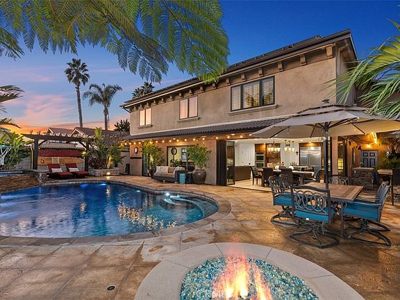 Welcome to the greatest home on the very best cul-de-sac in the South Huntington Beach neighborhood of Park Huntington. This home has been rebuilt with no expense spared. From the curb you will notice full custom hardscape with stained and stamped concrete, exterior lighting and landscaping with palms and plants from around the world. Exterior has been completely redone to smooth villa style stucco. 8ft custom double doors bring you inside and onto gorgeous hardwood floors in the formal living room with two story ceilings, fireplace, skylights, and custom staircase. Next head to the jaw dropping great room including kitchen, dining, and family rooms. The entire back corner of the home opens to the backyard and outdoor kitchen through a moving glass wall door system. Indoor becomes outdoor. Within the chefs kitchen you will find a giant island with seating for 8 including a 36-inch 6 burner gas cooktop, double commercial style stainless-steel fridge, dishwasher, electric double oven and microwave drawer, full custom hardwood cabinetry with ample storage, a walk-in pantry and kitchen desk. Just outside this gorgeous chefs kitchen is an outdoor kitchen to die for. Huge built-in stainless-steel gas BBQ with side burner, kegerator, outdoor sink and bar seating. This backyard is unbelievable and the attention to detail is like nothing you have ever seen. From the solar heated pool with a giant heated spa, multiple waterfalls, basketball hoop, gas tiki torches, fire accents to the cabana, and outside hot shower this backyard is your own private resort. All facing south for maximum sun. A downstairs bedroom and full bathroom access the backyard as well. Head upstairs to the gorgeous master suite, two secondary bedrooms, full bathroom, laundry room and massive bonus room. Master bath has walk-in shower, soaking tub, and double sinks. Bonus room has full custom Irish bar with kitchenette, full home theatre, and pool table. Fully finished 3 car garage, owned solar power and all the high end finishes you would expect throughout the home. This is a rare opportunity to purchase a home of this caliber in a location that can’t be beat. Don’t miss it.