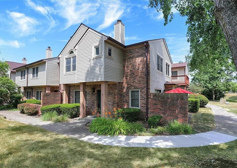 Beautiful end unit with fresh paint and new flooring. No carpets, all LVP floors. 2 car attached garage plus guest parking. Enjoy this quaint setting with a private patio with views of lush landscaping! Large family room open to a spacious dining room with a double sided fireplace. Kitchen includes all appliances. Bedrooms on 2nd floor. Updated mechanicals. Water softener included. Community is convenient to the interstate/attractions. Unit is right across from pool.