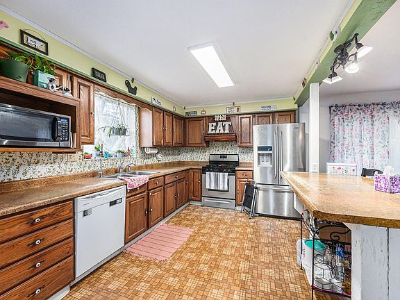 SPACIOUS 4 BR, 3 FULL BATH VICTORIAN home on 16 ACRES in the country with 5 outbuildings for storage or hobby. 1428 sq. ft on main level PLUS another 1428 on the upper level for a total of 2856 finished sq. ft, so lots of room in this home. Kitchen is large with plenty of cabinet space, snack bar, eating area and a separate pantry. There is beautiful wood trim throughout. Upstairs 2 more big bedrooms and full bath. 30x40' 2 car detached garage has metal siding and roof. The 28x40 barn has a metal roof. There is a 12x20 cottage that is stone with metal roof. Another stone shed with metal roof measures 16x48', AND another outbuilding that measures 18x34. Home needs updating but offers an amazing opportunity to be returned to its original grandeur with lots of living space & acreage on a corner lot in the country. There is a shared pond on the property. Seller had handshake lease on hayfield in 2025. Upstairs bath is in disrepair, seller will credit buyer. Home is being sold as is. Ample notice is required due to sellers work schedule. Call listing agent for more info. Seller is unable to make repairs. Hay field approximately 10-12 acres. There is a generator hook-up in the shed and the air compressor will stay with the property.