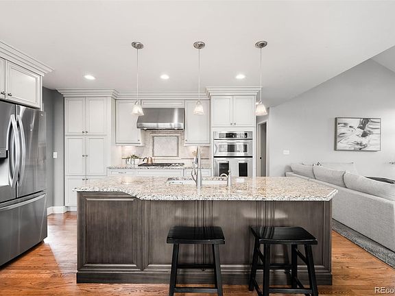 Stunning updated Lone Tree home with 5 bedrooms, 4 bathrooms, 3 car garage, finished walkout basement! The main floor features a private office with French doors, 2-story living room, formal dining room, updated kitchen, 2-story family room, 1/2 bathroom, laundry room. The kitchen has been remodeled and updated with a WOLF gas cooktop and a WOLF hood, dual wall oven with a convection/microwave and convection oven, trash compactor, ASKO dishwasher, custom cabinets, crown moulding, under cabinet lighting, pendant lighting, custom backsplash, beautiful granite, undermount sink, beautiful hardwood flooring. Enjoy the large deck with sunny mornings and shaded evenings. The beautiful curved staircase with iron balusters leads to you to the upstairs with a master bedroom, updated 5-piece bathroom, and walk-in closet, 3 additional bedrooms, and an updated full bathroom. The master bathroom has a natural walnut vanity with quartz counter, dual undermount sinks, freestanding tub, tub filler, custom frameless shower with linear drain and custom tile. The upstairs bath has a quartz counter, dual undermount sinks and new tile. The basement has a 5th bedroom, exercise area, 3/4 bathroom, bar area, theatre room and rec room. The landscaping has been professionally updated. You will love the fully fenced, flat backyard with a custom paver patio and garden boxes. Conveniently located near I-25 and C-470, Park Meadows Mall, Skyridge Hospital, Lone Tree Rec Center, and Lone Tree Golf Club. Close to parks, trails, light rail, and the post office. Enjoy the benefit of South Suburban Parks and Recreation.