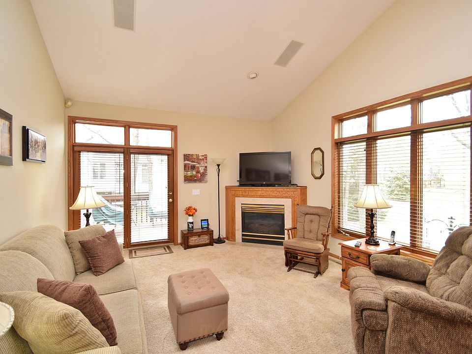 The Perfect town home with one level living and lower level for guests. Beautiful end unit with large wooded and landscaped yard. Fresh paint on main floor, gas fireplace, surround sound, hardwood floors, central vacuum, new furnace and a/c in 2011. Abundance of storage in lower level and garage. Chairlift can be included in the sale or removed prior to closing. Move right in to this lovely home.