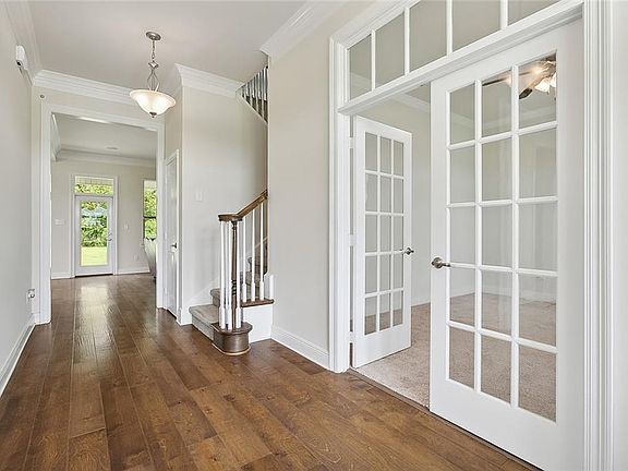 This stunning 4-bedroom, 2.5-bathroom home is nestled on nearly an acre lot at the end of the cul de sac. This home is open concept while still having the convenience of separation with a designated dining room and office space. The breakfast room and living room have a wall of large windows that provide plenty of natural light and views of the backyard. The kitchen is equipped with granite counter tops, stainless steel appliances, a pantry and is located between the breakfast and dining areas making serving family meals easy. Also located on the first floor is your guest half bath, a large laundry room and mud room off the garage. The primary suite is incredibly spacious and features tray ceilings, two closets, separate tub and a walk in shower. A versatile bonus area upstairs can be customized to suit your needs whether as a media room, home office or playroom. Three additional bedrooms upstairs, each with ample space and comfort and the third full bathroom. The large backyard is peaceful and serene with a wooded view behind the property line. A cozy back patio is a great area for summer barbecues and morning coffees. Home has a 2-car garage with additional driveway parking.