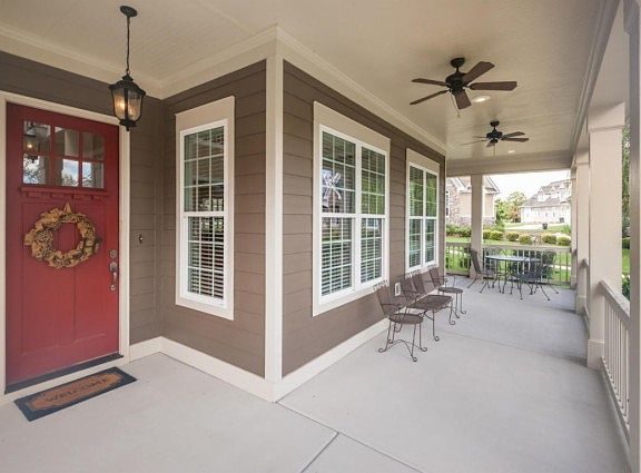 Whisper Creek (Windstone) custom home is better than new! Porches encircle almost all the exterior - perfect spot to relax after work! Hardwood entry leads to 2 story great room that showcases fireplace and adjoining built in cabinetry. Wall of windows makes this space so light and bright. Eating area bridges the gap to the kitchen with ample storage and room to sit at the bar. My favorite? Check out the built in mud room cabinetry and storage! I love spaces so well thought out! Master bedroom with its trey ceiling leads to private master bath with huge tile shower. Junior master has a trey ceiling as well. Massive bonus room is great flex space. All this on pancake level lot in sought after Windstone. Golf course, clubhouse, community pool - it doesn't get any better than this!!