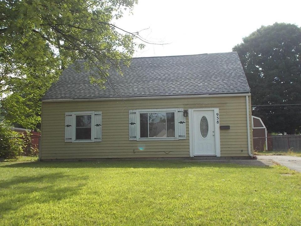 Ready to move into. Fresh paint, new laminate flooring, remodeled bath, new roof. Big back yard, nice sized storage shed. Cape Cod with 3 bedrooms!!!