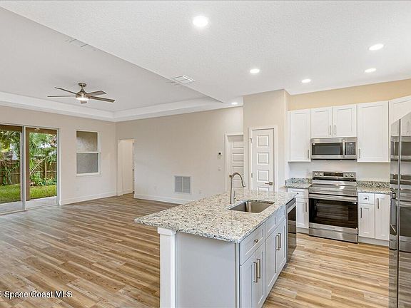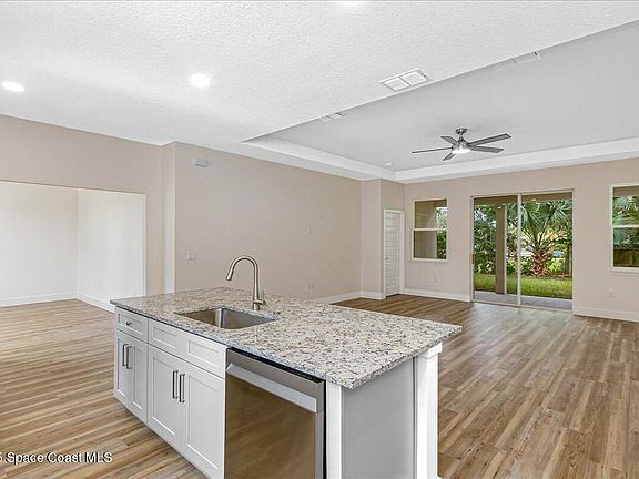 Custom-built home on city water & sewer. Open layout w/flex room & peaceful views of mature trees & nearby lake. The heart of this home is a stylish kitchen w/soft-touch cabinetry, granite counters & center island w/seating that overlooks family room - ideal for gatherings or everyday living. Owner's suite features a large walk-in closet & spacious step-in shower, while guest bath includes a tub/shower combo. Flex room up front works well as a dining room, office or playroom. Enjoy indoor/outdoor living on the covered back porch shaded by more beautiful mature trees. Inside laundry & 2-car garage add everyday ease. Tray ceilings & luxury flooring add polish throughout. Hurricane shutters offer security. Set in a quiet, sidewalk-lined neighborhood w/easy walks to the community park, playground, tennis & basketball courts, plus picnic spots around the lake. Don't miss your chance to be the first owner of this thoughtfully designed home.