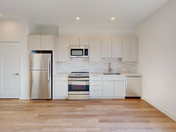 Central air conditioningIn-unit laundrySleek kitchenHardwood floorsQuartz countertopsRecessed lightingNewly renovated bath
