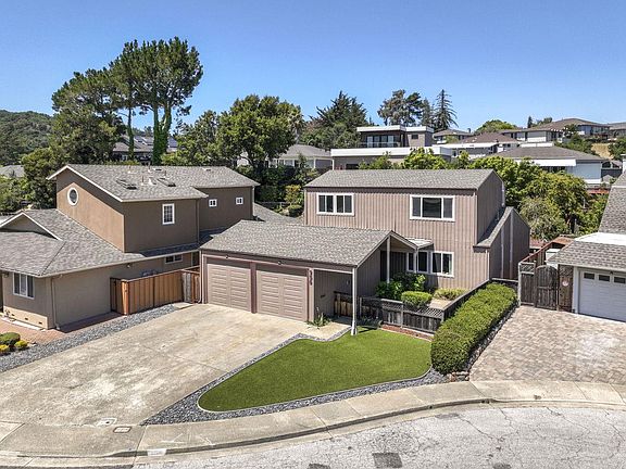 Spacious two-story Millbrae Meadows Mid-Century Modern home on a quiet street convenient to schools, shopping, dining and transportation, as well as easy access to I-280 and SFO! Four bedrooms and three full baths, including the primary suite on the ground floor, living and dining room with vaulted ceiling, nice redwood accents and fireplace, large eat-in kitchen plus family room with wet bar... A great house for entertaining! Large two-car garage plus parking for several cars on the driveway! Nice private backyard with patio and terraced planting areas. Lots of natural light with double paned windows throughout! Great neighborhood... This truly is Home Sweet Home!