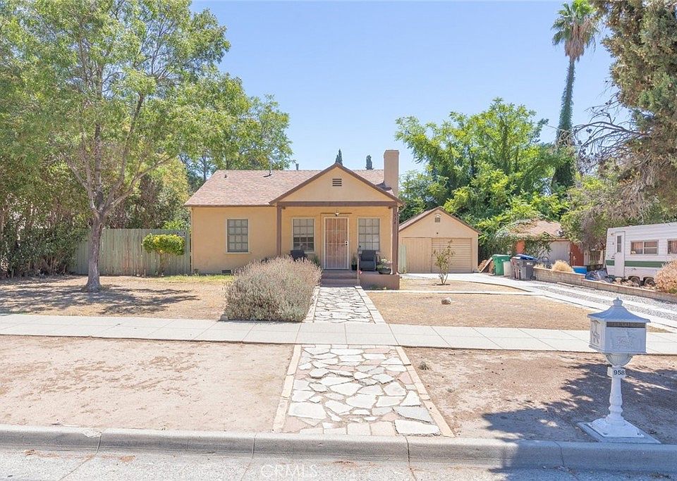 Welcome to this cozy starter home nestled in the heart of Banning! Perfectly suited for first-time buyers or those looking to downsize, this charming 2-bedroom, 1-bathroom residence offers comfort, convenience, and character. Step inside to find wood-like flooring that adds warmth throughout the living spaces, complemented by a welcoming fireplace in the living room—ideal for relaxing evenings at home. The kitchen is both stylish and functional, featuring sleek stainless steel appliances, crisp white cabinetry, and custom light fixtures that add a modern touch. Ceiling fans throughout help keep the home comfortable year-round. Outside, enjoy an ample-sized backyard with endless potential—perfect for weekend barbecues, gardening, or simply soaking up the sunshine. A detached garage provides additional storage or workspace options. Situated near the City of Banning Community Services facility, you’ll love the convenience of staying informed and connected to local events and activities. Don’t miss this wonderful opportunity to own a move-in ready home in a welcoming community!