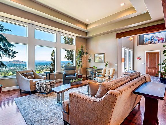 This Awbrey Butte home sits privately nestled on the hillside, and was architecturally designed to capture the panoramic easterly views. The stunning Great room has vaulted ceilings and picture windows ideal for taking in the morning sun. Well-appointed chef's kitchen has a large island & pantry. Two outdoor living areas make entertaining easy. Home office & master on the main level. Lofted second floor with 2 beds & bath. Large mudroom off the oversized 3-car garage. Absolutely gorgeous Designer's home!