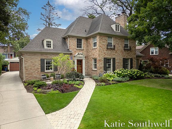 Admired for its striking presence and exceptional curb appeal, this 1929 brick masterpiece blends timeless elegance with modern luxury on one of East Grand Rapids' most coveted streets. Renovated by Sears Architects and landscaped by Rooks Landscaping, every inch has been thoughtfully designed for both beauty and function. Just steps from Gaslight Village, Reeds Lake Trail, parks, and top-rated schools, this home offers the best of walkable EGR living. At the heart of the home is a chef's kitchen (featured in a national design magazine), boasting custom cabinetry, center island, quartzite countertops, breakfast nook, and adjoining dining room. Light-filled living and dining rooms, a charming sunroom with original Pewabic tile (ideal for a private office), and a spacious family room with built-ins, heated floors, & wet bar provide exceptional spaces for both formal and casual living. Upstairs, you'll find four bedrooms and three remodeled baths, including a serene primary suite with heated bathroom floors and generous closet space. A full-sized attic above the second floor offers exciting potential for expansion. The lower level adds more living space, laundry, and abundant storage. Outdoor living is equally inviting with a landscaped backyard, patio, pergola over dining area, plus a rare rooftop deck. From original crystal doorknobs to new designer lighting, this home is a rare blend of historic character and modern comfort, ready for its next chapter.