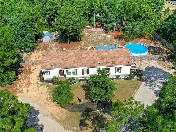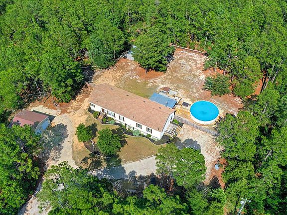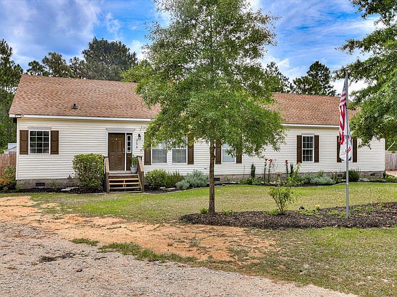 Welcome home to this freshly painted, spacious 4 bedroom, 3 bathroom Ranch-style Modular home. Nestled in the trees on 5 acres that backs up to the Aiken State Park, this home is set up for outdoor relaxation. Enjoy privacy among the pines while you sit on the 24x24 deck out back as you enjoy the 27' round above ground pool. Surrounded by a fenced in back yard and a partially covered patio, the outdoor area is great for entertaining. While entering the dining area there is an open concept kitchen with center island and new recessed lighting, the fully furnished kitchen is great for the chef who likes space while cooking. The main suite is complete with newly, remodeled walk in shower, new soaking tub and double vanity. The main suite also boasts an attached sitting room and large walk-in closet. A large guest suite with attached bath across the home provides a perfect spot for visiting friends or family while still having 2 more bedrooms that share a Jack & Jill bath! Out front on the gravel driveway sits a 24x25x9 Garage building with a 24/10 lean to. New HVAC and water heater installed 2020. Ready for new owners, priced to sell. Country living at its best! Don't miss out.