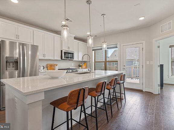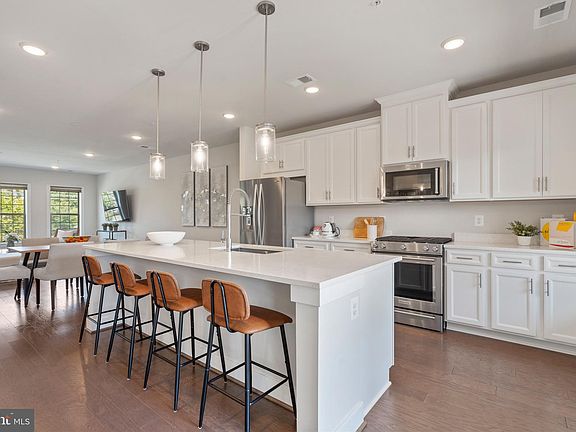 Welcome to the pinnacle of urban suburban living in the heart of Downtown Crown. This bright, expansive, and highly sought-after “Sydney” model, built in 2021 by Pulte Homes, combines upscale design and convenience as a matter of lifestyle! Boasting 3 Bedrooms + a large den and over 2,500 sq ft, this home is generous in space and deceptively large. The main floor offers bright, open sight-lines across the living and dining spaces, with southern exposures drenching the home in natural light throughout the day. Gleaming wide plank hardwood floors on the main level invite you to sit at your massive, 10-foot eat-in island, with quartz countertops. A spectacular Kitchen-Aid appliance suite with a gas-fired range and externally exhausted fume hood top off this luxury kitchen. A large main floor office/den, a proper walk-in pantry, powder room, and a party-sized deck off the kitchen/rear of the home complete the main level. On the second level, the oversized and light-filled primary suite contains two large walk-in closets and a lovely, spa-like en-suite bathroom with floor-to-ceiling tiles, high-end quartz countertops, glass shower enclosure, and separate water closet. Two additional large, sun-filled, and king-sized bedrooms along with an expansive bathroom on the second level, allow this property to lend the comforts and size of a detached property, without the maintenance involved. Additional enhancements include LED recessed lighting on the main level and custom window treatments throughout. Secured parking and direct access to the home from your garage make life even easier. This community is conveniently located just a short walk to Downtown Crown and less than a mile from Rio Washingtonian Center — both of which feature award-winning upscale bars and restaurants, shops, grocery stores, and gyms. The Retreat at the Crown Community Center also offers residents the opportunity to partake in community events, access outdoor pools, sport courts, playing fields, and gyms. For errands outside of the community, enjoy easy access to all major commuter routes including Rt.270 and Rt.200 at your doorstep. Don’t miss the opportunity to make this beautiful home and lifestyle yours!