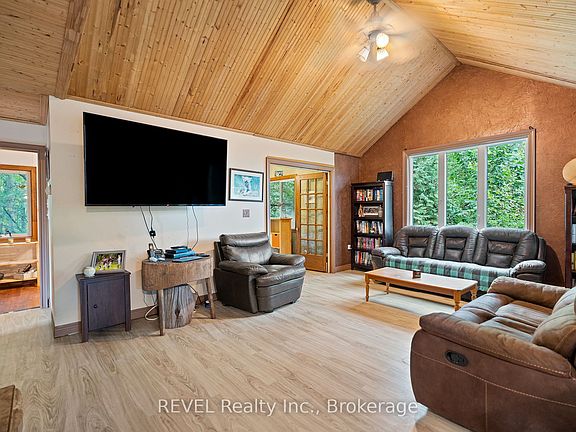 Wooded lotRustic charmVaulted ceilingsNewer kitchenWinding pathsTowering treesSerene beauty of nature
