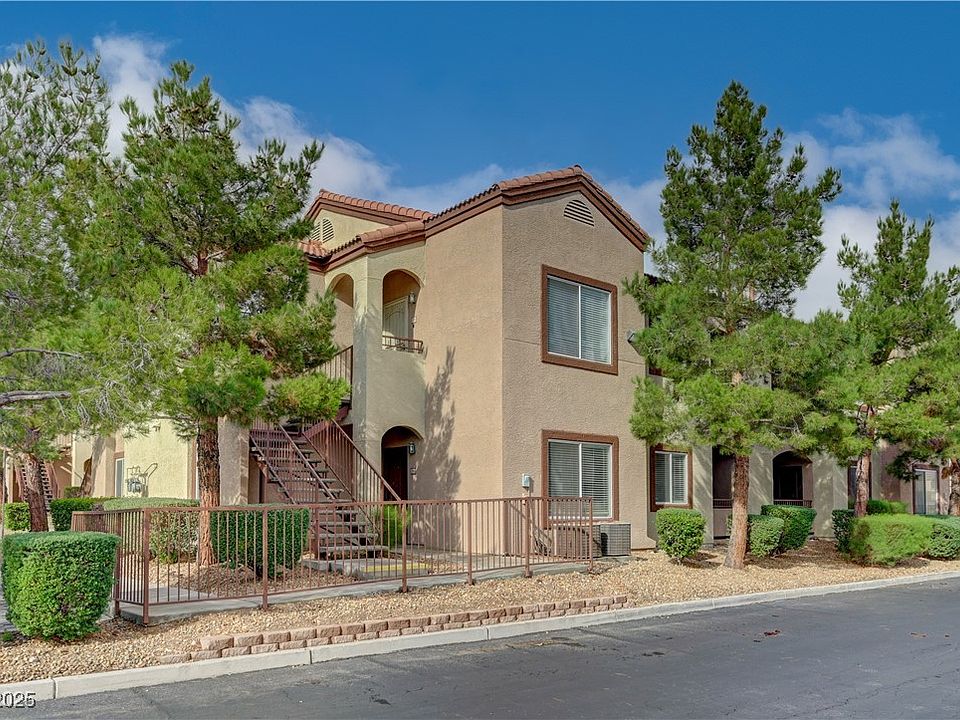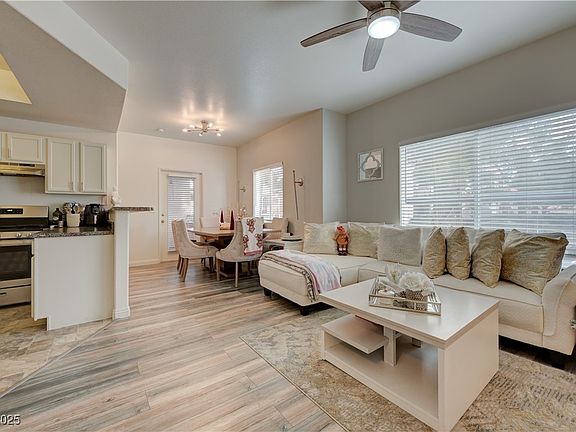 Welcome to this beautifully maintained first-floor residence in the gated Amber Hills community. This 2-bedroom, 2-bathroom condo offers a bright, open floor plan with a spacious living area and a well-appointed kitchen complete with stainless steel appliances and breakfast bar adjacent to the dining area. The primary bedroom includes an en-suite bathroom and a generous walk-in closet. Enjoy the convenience of in-unit laundry and your own private covered patio for relaxing evenings. Located just minutes of the 215 freeway, the new Durango Casino, restaurants, shopping, and everything the Southwest has to offer.