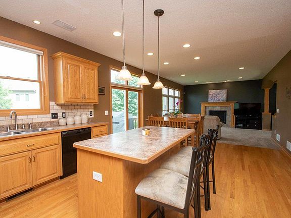 Move in ready... all landscaping complete, fencing, window treatments...6 Bedrooms...lots of possibilities. A walk in closet w/ built in cubbies! Main floor bedroom, basement bedroom both with 3/4 baths convenient to them. 4 bedrooms on upper level plus laundry too! COMPARE bedroom sizes w/ this home!! Allergies? Pet free the whole time! Then a kitchen you have been waiting for, so many cabinets to utilize & enjoy. 9' ceilings too. 2nd family room is 38x15 and that is not a typo! Outside entertaining with deck, patio and fenced backyard filled with fun landscaping. Continue in the lower level wet bar all set up perfectly. Garage door heights are 8 feet! Come see this custom built home comforts of an umbrella heating system. The heating and cooling comes from vents on the ceilings upstairs to cool your upstairs amazingly with hot air rising nicely for cozy winters too. Sellers chose Andersen windows! 2 Honeycrisp apple trees! Irrigation system to boot.