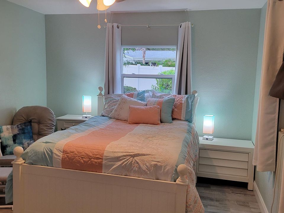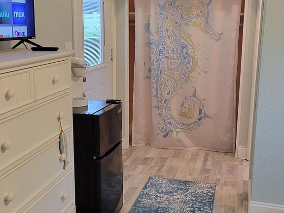 Gorgeous studio. Newly redone with private entry with lovely coastal decor and super lux furnishings. This space includes all utilities, pool & Lanai lounging, free wifi and ethernet connection, smart TV, apt. size refrig, microwave, toaster oven and coffee service. Also includes on site laundry. Large closet, extra storage, off street parking and room for your bike or kyack! A desk can be provided if you need work-at-home space! 2 miles to the beach and walking or biking distance to Pinellas Trail, grocery or Seminole City Centre! This locale is designed for ladies to enjoy the camaraderie and security of other female neighbors!