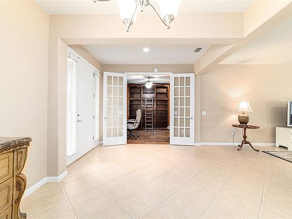 Enclosed lanaiCorian countertopsCeramic tileNew carpetOpen conceptCeiling fansOverhead storage