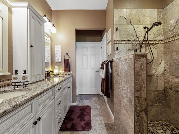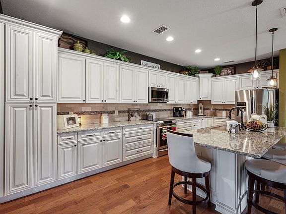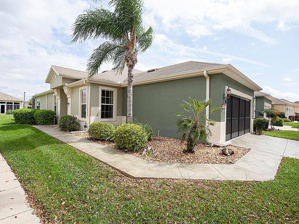 Custom Augustus Villa completely renovated with all the high end finishes and new mechanicals you could want or wish for. Let the pictures tell the story, but highlights include new kitchen and both baths. New flooring throughout, custom paint lighting and hardware. Extended living includes the lanai opened to home and finished the same as the entire interior. Dual paint high energy efficient windows, trim, flooring and lighting. Additional screen enclosure with solid roof so that you can enjoy the outside rain or shine. Custom landscaping driveway and walkway. Screened garage door, new HVAC and water softener and appliances in kitchen. You MUST see it to believe it. I would hurry if you want to purchase a luxury maintenance free villa in Stone Creek!