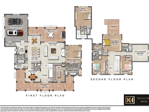 Introducing The Caroline — where classic charm and modern luxury come together in perfectharmony.step onto the welcoming wrap-around front porch and immediately feel the timeless elegancethat defines The Caroline. Whether you’re sipping your morning coffee as the neighborhood awakens orunwinding with a glass of wine in the evening, this space sets the stage for a life well lived.Inside, thoughtful design unfolds with every step from the wide foyer to the airy, open-conceptliving areas.The primary suite is privately tucked away on the first floor, offering a true retreatcomplete with a spa-like bathroom and a spacious walk-in closet. Meanwhile, the heart of the homethe expansive great room and gourmet kitchen flows effortlessly into the covered back porch,creating the perfect connection between indoor comfort and outdoor serenity.Upstairs, threeadditional bedrooms and a generous loft offer flexible spaces for family, guests, hobbies, or quietmoments.