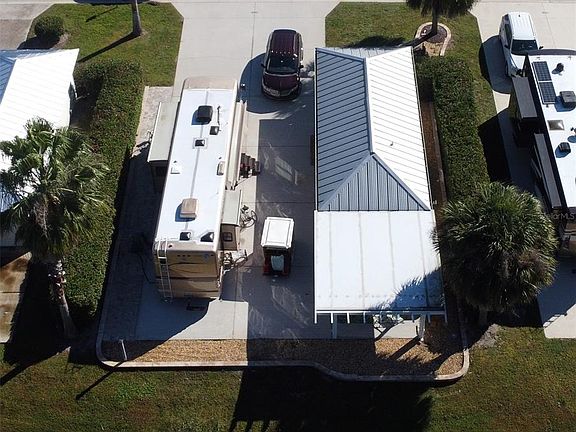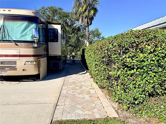 Welcome to Florida’s friendliest motorcoach resort, where neighbors quickly become friends and peaceful Central Florida living awaits. This 5,076 sq ft back-in, east-facing property overlooks a quiet cow pasture—your own front-row seat to stunning Florida sunsets from the 12' × 16' covered pergola. The 26' × 76' concrete pad provides full hookups for your Class A or Super C motorhome, and the 384 sq ft furnished Grande Suite offers the perfect balance of comfort and style. Inside, enjoy tile flooring, a mini-split air system, and a kitchenette with granite countertops, full size refrigerator, and an expandable island ideal for dining or workspace. The living area includes a pull-out couch—perfect for guests, and the full bath features a walk-in tile shower with glass doors, an oversized vanity, and abundant storage. The laundry room, accessible through a separate rear entrance, provides a washer/dryer, water softener, and extra cabinetry for organization. Located in Central Florida, this property offers the best of both worlds—no crowds, no traffic, yet close to countless day-trip destinations. From historic small towns and scenic springs to beaches and theme parks, there’s always something to explore—making this a favorite spot for visiting friends and family. Inside the resort gates, Florida Grande Motor Coach Resort offers a lifestyle that’s second to none. Enjoy a 20,000 sq ft clubhouse, fitness room, resort-style pool and spa, dog park, and eight pickleball courts. Stay as busy or relaxed as you like with trivia nights, happy hours, community dinners, yoga, bingo, and more—a full calendar of activities that makes this resort truly special. Find your peaceful retreat where comfort, connection, and community come together. Explore the life. Own the dream.