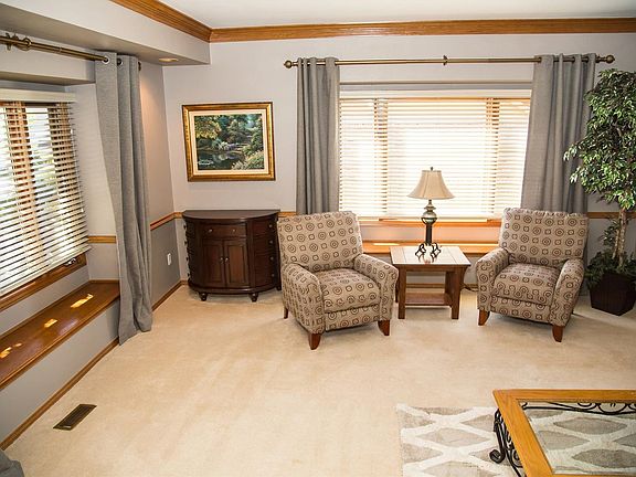 Custom 4 bedroom home with finished basement & oversized 3 car garage in golf course community; within walking distance of Eagle Ridge elementary school. Outdoor living at its best, with large composite deck, hot tub, concrete patio with pergola, front sitting area & flower garden. Custom details and woodwork throughout. Kitchen with high end slab granite counters, breakfast bar, travertine, stainless appliances including gas cooktop & double convection oven, built-in secretary and recessed lighting, 2 story family room with ceiling fan, rare floor to ceiling herringbone brick wood burning fireplace, formal dining & living rooms, master suite with double french door entry, large his/her closet and 5 piece updated master bath, 3 additional upper level bedrooms. Basement recreation and media rooms with 3/4 bath & wet bar with seating. A/C, attic fan, plantation shutters, 6 panel doors, new roof (2016), exterior paint (2016), main level & basement paint (2017), updated kitchen/bathrooms.