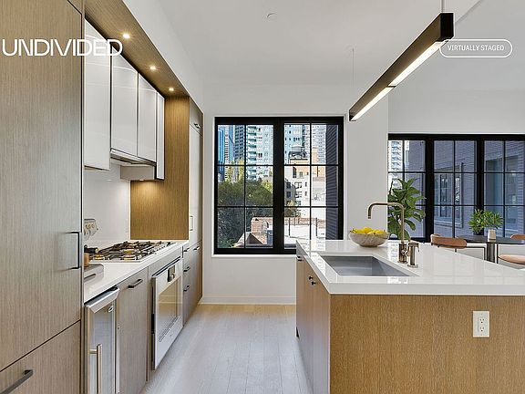 West-facing windowsCustom islandState-of-the-art gaggenau appliancesIconic skyline viewsIn-unit washer and dryerExceptional storageDedicated closet