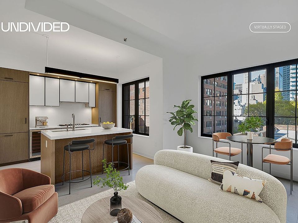 Welcome to Residence 8X, a sunlit, 742-square-foot one-bedroom home at The Sutton, Turtle Bay’s premier full-service condominium. Framed by a wall of west-facing windows, the spacious living area is bathed in golden afternoon light and offers iconic skyline views that set the tone for elevated city living.