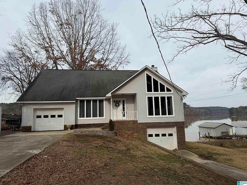 Beautiful river home situated on deeded land with a fully fenced yard, offering exceptional outdoor living and waterfront amenities. Property features a 3 slip boathouse with lifts, power and water, along with a covered pier, gazebo and open deck area overlooking the water-perfect for relaxing or entertaining.The brick and vinyl home provides water views from every room and features an open-concept layout with a living room, formal dining room and a great room with a wood burning fireplace and built in shelving. Hardwood floors and a half bath are also an amenity on the main level. It offers an updated kitchen with granite countertops, all appliances remain and a large eating area with stunning water views. Main level also offers a 1-car garage and a spacious laundry room with a sink, pantry and storage closet. Upstairs includes the Master Suite, master bath, 2 large bedrooms and a full bath. Attice storage. The basement has a 1-car garage and room for expansion with plumbing stubbed.