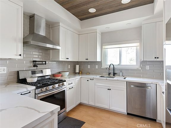 Turn-key completely remodeled end unit townhome. This stunning light filled airy townhome with vaulted ceilings features 3 bedrooms and a den which could be a 4th bedroom. Features include wood floors, a fireplace in the living room, recessed lighting, and crown moulding and A/C. The kitchen is a chef's dream with quartz counters, contemporary backsplash, stainless appliances and even an instant water tap above the stove to fill your pots. The primary bedroom has sliders to a large balcony and has an en-suite bathroom with separate shower and soaking tub, as well as double sinks. The additional bedrooms on this level are a good size and have vaulted ceilings. The 4th bedroom/den can be found on the lower level along with the 2 car garage.