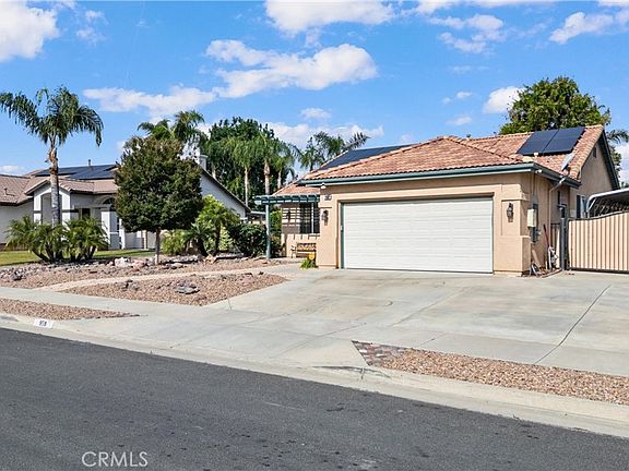 Beautiful 3-Bedroom, 2-Bath Home in an Established Hemet Neighborhood. Welcome to this inviting home featuring a spacious open floor plan and soaring high ceilings. The cozy living room is highlighted by a custom-built fireplace, perfect for relaxing or entertaining guests. The modern kitchen is a chef’s dream, offering ample cabinetry, well-lit countertops with a stylish backsplash tile, and a ceiling fan for added comfort. Enjoy year-round comfort with a newly upgraded, high-efficiency A/C condenser and a brand-new water heater. The front yard is designed for easy maintenance, showcasing decorative, drought-tolerant landscaping. The backyard is perfect for entertaining, with a good-sized layout, an Alumawood-covered patio, and a 45-foot-long metal carport—ideal for extra parking or storage. This home is conveniently located near the Ramona Expressway, providing easy access for commuting. Enjoy the outdoors with a nearby community walking trail, perfect for leisurely strolls.