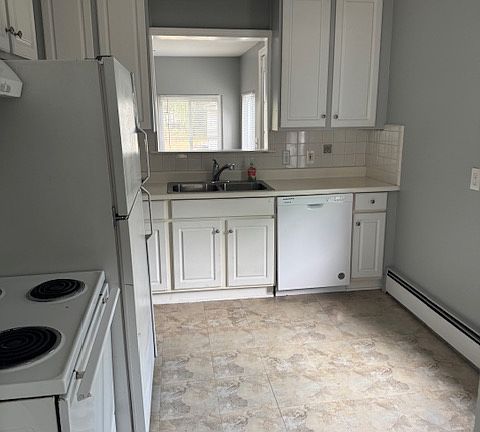 Newer kitchen with stove, fridge and dishwasher, washer/dryer