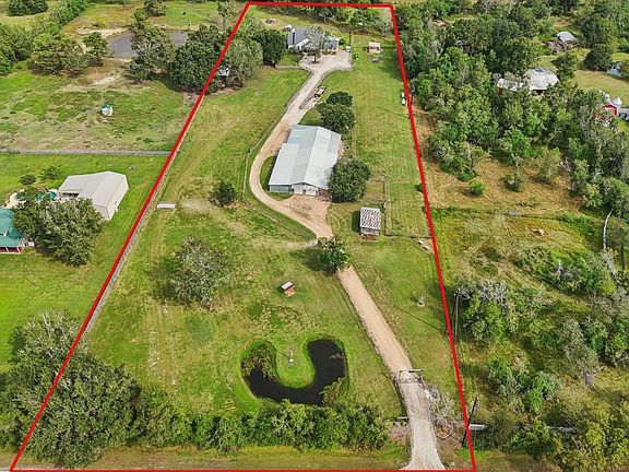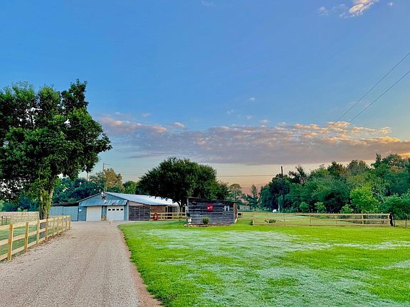 Escape to your own private luxury ranchette. This fully fenced, private, unrestricted and ag-exempt 5+ acre estate offers a refined blend of modern conveniences & country freedom. Stroll past native trees to two stocked ponds, greenhouse, barn and ample space for horses, cattle, and chickens. Inside, the custom home stuns with soaring ceilings and limestone fireplace in den, chef designed kitchen w/ quartz countertops, commercial range, custom cabinetry, and dual pantries. Romantic primary suite showcases trestle beams and private door to unwind in the sparkling saltwater pool or hot tub beneath the stars. Renovated from top to bottom in 2023–2024—roof, HVAC, plumbing, electrical, flooring, and designer finishes. A full-property Generac ensures seamless comfort. The impressive 1,000 sq ft barndominium features two bedrooms, gameroom, kitchenette, and direct access garage & shop. Just 30 minutes from downtown Houston, this property delivers luxury, privacy, and true Texas living.