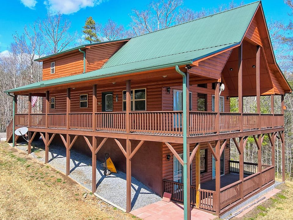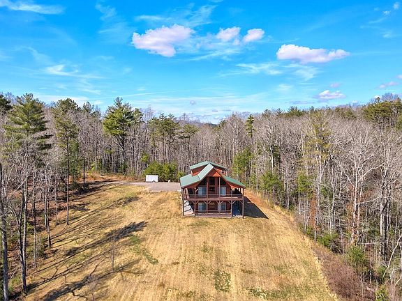 Only 15 minute drive to McCaysville, 25 minutes to Blue Ridge; 8.32 acres of privacy with a chalet style cabin with a view and great internet. Like new three level chalet with full wrap around covered porches to enjoy the peaceful, private setting and long range mountain views. Popular open floor plan with tons of glass, soaring wood ceilings, hardwood floors and stone fireplace. A bed & bath on each level with private loft owners suit in loft. Finished lower level with family room and two additional bonus rooms. Very private on 8 gentle acreage mostly wooded, but a nice open area for outdoor enjoyment. Large parking area, plenty of room to add a garage or large outbuildings. Furnishings negotiable.