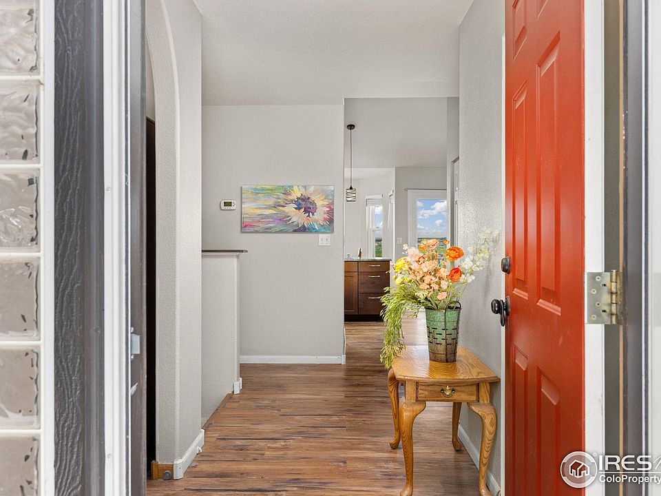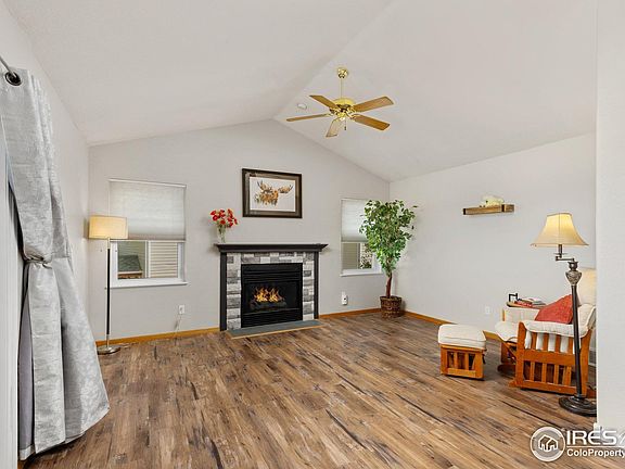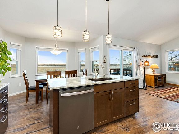 It's a 4-bed, 3-bath ranch-style house with a finished walkout basement and no backyard neighbors, backing to open space. Highlights include a remodeled kitchen , new appliances, gas range, granite island with sink, soft close drawers, and tall cabinets with crown molding. A primary bedroom with a 5-piece bath and farmland and mountain view balcony, a guest suite with a private walkout, a main floor office/flex space and laundry. 2 fireplaces, a new roof, an oversized 2-car garage, and extra parking. There's also unfinished space for storage or expansion, and it's located near Sunrise Park. NO HOA or Metro! The home emphasizes natural light and a tranquil setting.