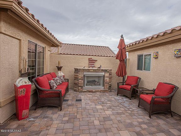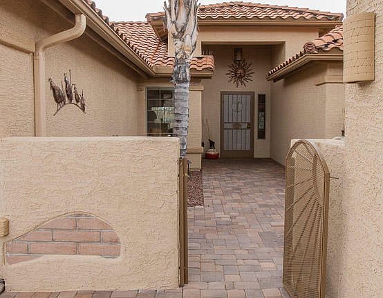 This golf course home offers privacy plus panoramic views. Updates for your outdoor living include an enclosed patio, plus a pergola extension including a built-in hot tub over looking the 5th tee box of the Coyote course. The added 12 X 16 garage space creates a private enclosed front courtyard seating area complete with a gas fireplace. This exceptional home features upgraded cabinetry, top of the line Samsung stainless appliances, engineered stone counters and tile everywhere except the bedrooms. The garage has been extended 4' for additional storage.