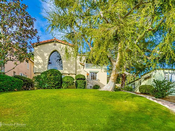 Updated to perfection while retaining charm, the modernization of this Spanish Revival will not disappoint. Perched above the street in the historic Rossmoyne neighborhood, highlights include original oak floors, chef's kitchen, spa-inspired bathrooms, bonus office & storage galore. Main level entry replete with magnesite flooring & sweeping stairwell flows into voluminous living room w/ carved, open beam ceiling & treetop views to DTLA. Designer open concept kitchen appointed with Caesarstone counters, farmhouse sink, Bertazzoni cooktop, KitchenAid appliances, custom cabinets & huge waterfall peninsula that flows into character-filled dining room. Upstairs regal master has balcony with views & his/her walk-ins. Gorgeous en-suite has floor-to-ceiling marble, dual vanity, glass shower & dreamy soaking tub. 2nd upstairs bedroom is expansive with dual walk-ins & views. Walk out back to verdant, spacious & private yard ready for entertaining, gardening or relaxing.